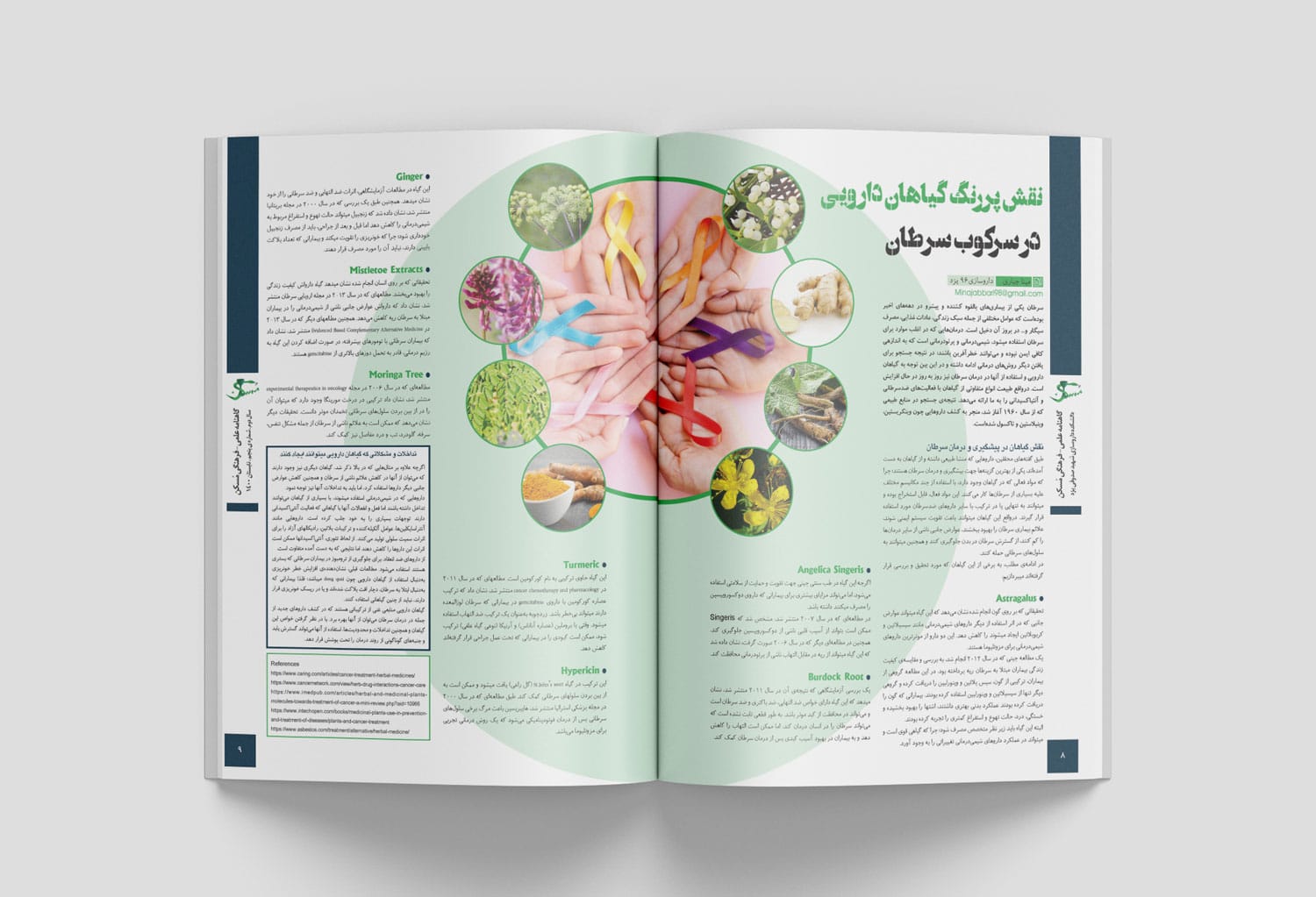 در طراحی این مجله پزشکی سعی شده با استفاده از عکسهای با کیفیت بالا، همچنین الگوهای دایره ای شکل باعث افزایش جلوه بصری مجله گردد.