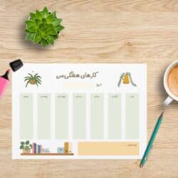 در این محصول رایگان، برگه‌های پلنر با طراحی رنگی و فانتزی به شما امکان می‌دهند تا برنامه‌ریزی خود را به شکلی منحصر به فرد و زیبا انجام دهید. این برگه‌ها به زبان فارسی تهیه شده‌اند و شما می‌توانید برنامه‌های خود را به صورت روزانه، هفتگی و ماهانه بر روی این جداول ثبت کنید.