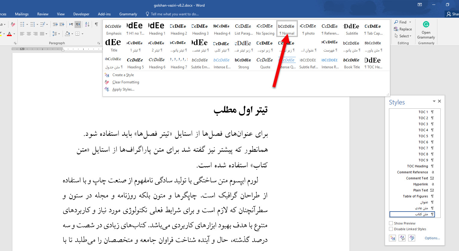 - با انتخاب استایلی که دوست دارید، متنی که انتخاب کرده بودید به استایل مورد نظر تغییر مییابد